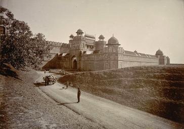 | Keywords: Delhi Gate of the Red Fort in the 1890s.jpg en Photograph of the Delhi Gate at the Red Fort in Delhi from the Curzon Collection taken by Lala Deen Dayal in the 1890s from the Curzon Collection 'Views of places proposed to be visited by Their Excellencies Lord Lady Curzon during Autumn Tour 1902' The Delhi gate is one of two main entrances to the Lal Qila or Red Fort the palace citadel built in the 1640s by the Mughal emperor Shah Jahan r 1627-1658 as the headquarters of his new capital Shahjahanabad The palace apartments are contained within a fortification wall built of red sandstone surrounded on three sides by a moat and on the fourth by the river Yamuna This is a general view of the gate from outside the fort showing the bastions battlements chhatris and turrets which crown the walls s 1890 http //www oldindianphotos in/2009_04_11_archive html Creator Lala Deen Dayal other versions Custom license marker 2014 10 27 PD-100 Uploaded with UploadWizard Delhi in the 1890s Delhi Gate Red Fort Lala Deen Dayal British Library Photo 430 Curzon Collection |