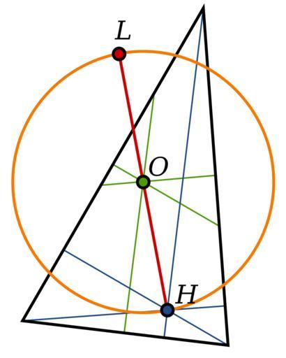 Keywords: DeLongchamps Point.svg de Longchamps point L of a triangle It is the reflection of the orthocenter H in the circumcentre O Own Inductiveload 08/12/2008 Special points in a triangle