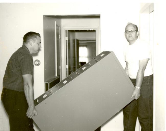 Keywords: ray horst rayhorst mennonite board of missions mennoniteboardofmissions voluntary service voluntaryservice delvin nussbaum delvinnussbaum filing cabinet filingcabinet monochrome Caption: October, 1966. Elkhart, Indiana. Moving day for the Relief and Service Office. Here Delvin Nussbaum and Ray Horst are carrying a filing cabinet in. Citation: Mennonite Board of Missions Photographs. Missionaries, 1955-73. IV-10-7.2 Box 7 Folder 71. Mennonite Church USA Archives - Goshen. Goshen, Indiana. Caption: October, 1966. Elkhart, Indiana. Moving day for the Relief and Service Office. Here Delvin Nussbaum and Ray Horst are carrying a filing cabinet in. Citation: Mennonite Board of Missions Photographs. Missionaries, 1955-73. IV-10-7.2 Box 7 Folder 71. Mennonite Church USA Archives - Goshen. Goshen, Indiana. |