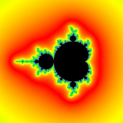 Keywords: Demm 2000 Mandelbrot set.jpg Mandelbrot set for F z z z+c using Milnor algorithm DEM/M own Adam majewski Adam majewski Compare with <gallery> File Mandelbrot set rainbow colors png Image with C++ code without zoom and different algorithm File Mandelbrot set zoom with continous escape time png contiunous escape time with c code File Mandelbrot set 10000px png continous colour but without algorithm </gallery> The image contains a rectangular region corners of c-plane C_Plane eCxMin -2 5 C_Plane eCxMax 1 5 C_Plane eCyMin -2 C_Plane eCyMax 2 center and sides of c-plane C_Plane Center x -0 5 C_Plane Center y 0 C_Plane width 4 C_Plane height 4 Bitmap size in pixels Bitmap Width 3000 Bitmap Height 3000 Number of bitmap points 9000000 points Drawing Time 21625 miliseconds Bitmapa PixelFormat pf32bit Maximal number of iterations 1000 Escape Radius 100 Image is made with program http //fraktal republika pl/mandel html MandelbrotSetExplorer It is made using programing language object Pascal IDE Borland Delphi 6 0 - 7 0 personal edition - 10 0 Turbo Explorer programing style libaries standard VCL OS windows Bitmap image is transformed to jpg with IrfanView author Adam Majewski fraktal republika pl 20003- 2007 Delphi Pascal src code <pre> spoken language english programming language Pascal Borland object Pascal compiler VER 140 IDE Borland Delphi 7 0 personal edition programming style obiektowy programming method visual RAD target CPU library standard VCL program type GUI application licence GNU GPL OS win32 windows 98 SE hardware PC platform ix86 author Adam Majewski adammaj1- at - o2 - dot - pl republika pl/fraktal walbrzych poland 2005 12 12 </pre> Computing color from RGB gradient <source lang pascal> // function Rainbow iMin iMax i Integer TColor; // gives rainbow gradient of color // Opracował Witold J Janik; WJJ CAD PL // // Funkcja FnTecza umożliwia narysowanie // tęczy przy zmianie i od iMin do iMax // podziękowania dla Andrzeja Wšsika z pl comp lang delphi // http //4programmers net/view php id 201 var m Double; r g b mt Byte; begin m i - iMin / iMax - iMin + 1 6; mt abs round frac m FF ;// added abs ; why erange check eror case Trunc m of 0 begin R FF; G mt; B 0; end; 1 begin R FF - mt; G FF; B 0; end; 2 begin R 0; G FF; B mt; end; 3 begin R 0; G FF - mt; B FF; end; 4 begin R mt; G 0; B FF; end; 5 begin R ff; G 0; B FF - mt; end; end; // case Result rgb R G B ; end; //------------------------------- </source> exterior Distance Estimastion Method for Mandelbrot set DEM/M <source lang pascal> Function PointIsInCardioid Cx Cy extended boolean; //Hugh Allen // http //homepages borland com/ccalvert/Contest/MarchContest/Fractal/Source/HughAllen zip var DeltaX DeltaY extended; // PDeltyX PDeltyY extended; // ZFixedX ZFixedY extended; begin result false; // cardioid checkig - thx to Hugh Allen //sprawdzamy Czy punkt C jest w głównej kardioidzie //Cardioid in squere -0 75 0 4 x -0 65 0 65 if InRange Cx -0 75 0 4 and InRange Cy -0 65 065 then begin // M1 all C for which Fc z has attractive stable fixed point // znajdyjemy punkt staly z z z z+c // czyli rozwiazujemy rownanie kwadratowe // zmiennej zespolonej o wspolczynnikach zespolonych // Z Z - Z + C 0 //Delta 1-4 a c; Delta i C sa liczbami zespolonymi DeltaX 1-4 Cx; DeltaY -4 Cy; // Pierwiastek zespolony z delty CmplxSqrt DeltaX DeltaY PDeltyX PDeltyY ; // obliczmy punkt staly jeden z dwóch ten jest prawdopodobnie przycišgajšcy ZFixedX 1 0-PDeltyX; //0 5-0 5 PDeltyX; ZFixedY PDeltyY; //-0 5 PDeltyY; // jesli punkt stały jest przycišgajšcy // to należy do M1 If ZfixedX ZFixedX + ZFixedY ZFixedY <1 0 then result true; // ominięcie iteracji M1 przyspiesza 3500 do 1500 msek end; // if InRange Cx end; //------------------------------------ Function PointIsInComponent Cx Cy extended boolean; //Hugh Allen // http //homepages borland com/ccalvert/Contest/MarchContest/Fractal/Source/HughAllen zip var Dx extended; begin result false; // czy punkt C nalezy do koła na lewo od kardioidy // circle center -1 0 and radius 1/4 dx Cx+1 0; if Dx Dx+Cy Cy < 0 0625 then result true; end; Function GiveDistance xy2 eDx eDy extended extended; begin result 2 log2 sqrt xy2 sqrt xy2 /sqrt sqr eDx +sqr eDy ; end; //------------------------------------ //------------------------------ Procedure DrawDEM_DazibaoTrueColor; // draws Mandelbrot set in black and its complement in true color // see http //ibiblio org/e-notes/MSet/DEstim htm // by Evgeny Demidov // // see also //http //www mandelbrot-dazibao com/Mset/Mset htm // translation with modification of Q-Basic program // http //www mandelbrot-dazibao com/Mset/Mdb3 bas // // see also my page http //republika pl/fraktal/mset_dem html var iter integer; iY iX integer; eCy eCx extended; // C eCx + eCy i eX eY extended; // Zn eX+eY i eTempX eTempY extended; eX2 eY2 extended; //x2 eX eX; y2 eY eY; eXY2 extended; // xy2 x2+y2; eXY4 extended; eTempDx eTempDy extended; eDx eDy extended; // derivative distance extended; color TColor; begin //compute bitmap for iY iYmin to iYMax do begin eCy Convert_iY_to_eY iY ; for iX iXmin to iXmax do begin eCx Convert_iX_to_eX iX ; If not PointIsInCardioid eCx eCy and not PointIsInComponent eCx eCy then begin // Z0 0+0 i eX 0; eY 0; eTempX 0; eTempY 0; // eX2 0; eY2 0; eXY2 0; // eDx 0; eDy 0; eTempDx 0; eTempDy 0; // iter 0; // iteration of Z ; Z Z z +c while iter<IterationMax and eXY2< BailOut2 do begin inc iter ; // eTempY 2 eX eY + eCy; eTempX eX2-eY2 + eCx; // eX2 eTempX eTempX; eY2 eTempY eTempY; // eTempDx 1+2 eX eDx-eY eDy ; eTempDy 2 eX eDY+eY eDx ; // eXY2 eX2+eY2; // eX ETempX; eY eTempY; // eDx eTempDx; eDy eTempDy; end; // while // drawing procedure if iter<IterationMax then begin distance GiveDistance eXY2 eDx eDy ; color Rainbow 1 500 Abs Round 100 Log10 distance mod 500 ; with Bitmap1 FirstLineiY Bitmap1 LineLength+iX do begin B GetBValue color ; G GetGValue color ; R GetRValue color ; //A 0; end; // with FirstLineY LineLength+X end // if iter<IterationMax t