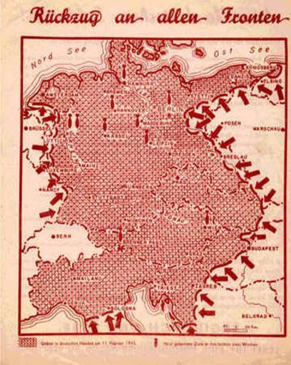Keywords: Demoralization Leaflet PWB-47.jpeg en US Government leaflet attempting to demoralize German enemy by showing their defeat as imminent 1945 http //www psywarrior com/DivideandConquer html Federal Government PD-USGov World War II anti-German propaganda Uploaded with UploadWizard |