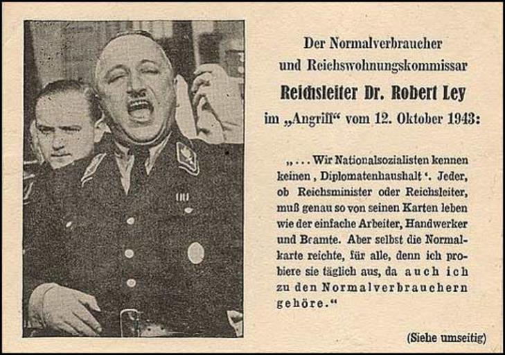 Keywords: Demoralization Leaflet Robert Ley Postcard front.jpeg en Front of US Government leaflet attempting to demoralize German enemy by showing that their leadership lived a much better life 1943 http //www psywarrior com/DivideandConquer html Federal Government PD-USGov World War II anti-German propaganda Uploaded with UploadWizard |