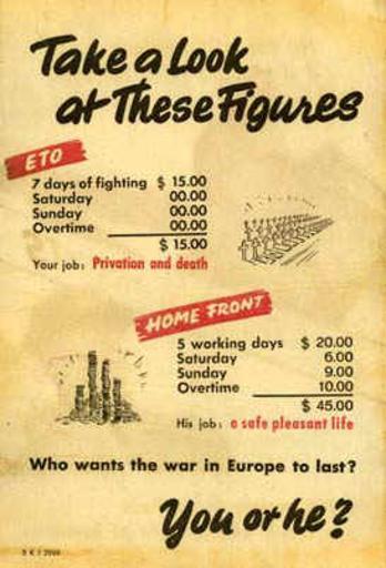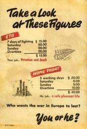 Keywords: Demoralization Leaflet SKJ 2006 back.jpeg en Back of German government leaflet attempting to demoralize US enemy by showing how much better life was away from front lines of war 1945 http //www psywarrior com/DivideandConquer html Federal Government PD-USGov World War II anti-German propaganda Uploaded with UploadWizard |