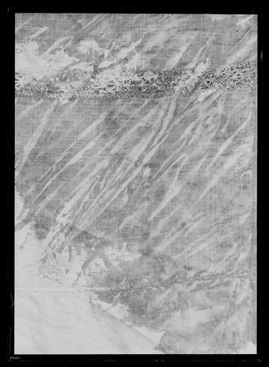 | Keywords: Den yttersta av Gustav II Adolfs Lützenskjortor - Livrustkammaren - 60865.tif LSH artwork sv Rester av skjorta i 3 delar ryggstycke med en bit av kragen v framstycke med kragstycke och större delen av ärmen samt h framstycke med kragens främre halva och en del av bakstycket <br/><br/>1 Ryggstycket med en bit av kragen <br/>Skjortans vådbredd har i h ö sida utökats med en våd av 460 mm som tillför plagget en bredd av 230 mm på resp fram- och bakstycket På ryggsidan är denna fåll gjord som stad mot stad - sammankastad fåll från avigsidan av plagget 7 kaststygn åt v med H-tvinnat lingarn Av denna fåll finns nerifrån kantfållen kvar 350 mm sedan har sannolikt från sprundet klippts och rivits en stor lucka av sömmen saknas 360 mm sedan kommer på nytt ett 630mm långt stycke av kastfållen Okstycket är här blott ett oregelbundet klippt stycke med snedklippt överkant På V sida som rivits av utefter sidfållen - fällsömmen finns blott ytterligare ett stycke av ärmspjället kvar och en liten bit 40 mm av dess söm mot ärmen Spjällets kant är här 150 mm Fållen sydd med h-tvinnat lingarn med 6 stygn /cm och drygt 1 mm bredd Av kragen återstår i underkanten en 145 mm lång bit Upptill blott en 100 mm lång bit där spetsen sytts fast med 8 stygn kast- åt V/cm med H-tvinnat lingarn Kragen är 670 mm hög I kragen har ca 16 rynkor stripats och 7 kaststygn åt H sytts ned på rätan och ca 7 stygn/cm i de tättplacerade parallella garneringssömmarna Hela arrangemanget är ej mer än 3 mm brett H-tvinnatlingarn har använts till garneringssömmarna Den breda uddspetsen med bl a flätslag är 50 mm bred den smala 15 mm Den breda har en rapport av ca 24 mm <br/><br/>2 Ett stycke av skjortans V framsida med kragstycke och större delen av ärmen <br/>Största längd fram är från kragens underkant max 530 mm och 140 mm halssprund finns kvar Här är också vådbredden bevarad mellan halssprund och ärmsöm Av ärmsömmen finns det 290 mm kvar varav 220 ovanför spjället som alltså är bevarat som en 70 mm bred remsa och här är spjället klippt snett ½ våden verkar då att vara 595 à 600 mm bred på v bröstsida Slätt parti fram på axeln är ungefär 200 mm enligt detta stycke att döma Ärmmanschetten är 45 mm bred med stripade veck ca 12 veck/cm och 7 stygn såväl mellan dessa som i de 2 garneringsraderna hela dekorens bredd 3 mm Spetsen är densamma som på kragen Manschettstyckena är mycket blodiga <br/><br/>3 H framstycke fr o m halssprundet med kragens främre halva och en del av bakstycket av kragen hela axelsömmen samt en övre del av ärmen med spjället - som dock har en reva En ände till1150 mm nående remsa finns av skjortans framstycke från axelsömmen räknat Nederst är denna blott 110 mm bred och då den tydligen har klippts av när tyget redan låg veckat är dess kant uddig souvenir Axelsömmen är 160 mm och sneddad så att den är 130 mm vid axeln men krymper till blott ett par mm vid halsen På rätsidan är det ryggstycket som går över framstycket 3 sömmar med 7-8 stygn/cm Det övriga tyget - de ca 420 mm har rynkats samman i kragen till 100 mm Fällsömmen som förenar framstyckets med sidovåden är gjord för att bli särskilt smidig från skjortans insida med 7 kaststygn åt V gjort från rätan över staden Fållen är blott millimeterbred Av kragen finns i nederkanten en 160 mm lång bit I överkanten är den dock inte mycket mer än 130mm från hörnet räknat Längs överkanten står den smala uddspetsen upp och den löper utefter halssprundet mitt fram På kragens horisontella del är från överkanten och nedfallande en bredare uddspets fästad <br/><br/>Gemensamt <br/><br/>Av linnelärft med trådantal 43 varptrådar x 44 inslagstrådar / cm2 sammanfogad av framstycke bakstycke b 1470 mm sidstycke samt ärmar ärmspjäll krage och ärmlinningar I sidorna har nertill ämnats ca 510 mm höga sprund staden är synlig här i v sida Skjortans bålparti är rakt tillskuret Nedtill har skjortan fållats upp med en 15-20 mm bred fåll sydd med 5 à 6 stygn/cm av H-tvinnat lingarn De rektangulärt tillskurna ärmarna blott den v någorlunda bevarad är 610 mm långa och 460 mm breda och garnerade med 3 rader knappt 20 mm breda vita knypplade mellanspetsar påsydda med ca 100 mm mellanrum Ärmarna är fastsydda i skjortans sidsöm på v sida där staderna stöta mot varandra I h sida har man klippt upp ett 390 mm långt sprund för ½ ärmbredden 230 mm + spjäll 160 mm 390 mm Nedanför ärmstycket har alltså ett spjäll med ca160 mm sida sytts fast Ärmarna är alltså isydda helt normalt och inte som Anna Maja Nylén förmodat enligt en mer egendomlig konstruktion så att ärmen skulle nå ända fram till halslinningen <br/><br/>Axelsömmarna är i det allra närmaste helt raka de yttersta 165 mm Man har blott vikt ner fållarna något bredare mot axeln än mot halsen ca 5 mm differens Härefter har ll återstående vidd rynkats in i den dubbelvikta knappt 70 mm håga kragen som är ca 400 mm lång så att frampartierna av skjortorna fördelats på kragens främre decimeterlånga stycken medan ryggstycket rynkats i kragens bakre 200 mm <br/><br/>Halssprundet är klippt upp vertikalt i framstycket l minst 270 mm synligt i h sida där spetsgarneringen bevarats en 15 mm bred uddspets Dessutom kan påpekas att sprundet ej placerats helt symmetriskt mitt på skjortans framstycke utan med ett par centimeters förskjutning åt h då det klippts ca 600 mm från v sidsöm och 230 + 350 580 mm från h sida Dekor av en 15 mm bred uddspets rapport 20 mm Överst på kragen är denna typ av spets fastsydd för att stå upp som en avslutande kant På kragens utsida är kant i kant med den smala spetsen och nedåt en bredare uddspets fastsydd Denna är 50 mm bred och har en rapport av 22 mm motivet påminner om solfjädrar <br/><br/>Kragens garneringssömmar sydda med efterstygn i 2 parallella rader med 7 stygn/cm och 16 rynkor a