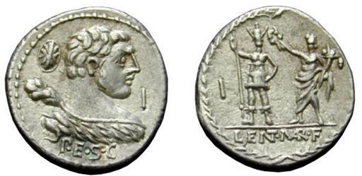 | Keywords: Denarius Publius Cornelius Lentulus Marcellinus 2.jpg ru Дена ий се еб о Дата чеканки 100 г до н э онетный дво Рим вес 3 92 г АВЕРС Бюст молодого Ге кулеса в шку е льва вп аво отве нушись от з ителя; на левом плече дубина; за головой щит; под бюстом PE S C Publice senatus consulto ; спе еди латинская буква I Кайма из точек РЕВЕРС Рома в домпехах стоит анфас де жит копье упе евшись левой укой в бед о; ее увенчивает венком Гений имского на ода кото ый де жит ог изобилия в левой уке; в поле слева латинская буква I В об езе LENT MAR F NT MAR моног аммой Lentulus Marcelli filius Кайма из лав ового венка http //ancientrome ru/numizm/catalog/coin htm id 1199 Author I century B C Denarius Publius Cornelius Lentulus Marcellinus moneyer 100 BC PD-old |
