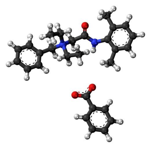 Keywords: Denatonium benzoate 3D ball.png Ball-and-stick model of the component ions of denatonium benzoate the most bitter know chemical compound with a denatonium cation top and a benzoate anion bottom Colour code 505050 Carbon C black<br> F0F0F0 Hydrogen H white<br> F51E1E Oxygen O red<br> 3C50FA Nitrogen N blue<br> 2011-06-27 own DS Visualizer Jynto talk Cation ball-and-stick version Cation space-filling version Benzoate salt space-filling version chemistry cc-zero Images by Jynto Un-N-substituted anilides Xylenes Ball-and-stick models quaternary ammonium compounds food additives benzoate salts |