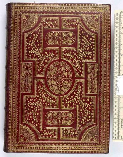 | Keywords: Dendrologiae naturalis scilicet arborum historiae libri duo - Upper cover (Davis877).jpg Style Fan Fanfare Pointille comprising dots ; Caption Upper cover; Colour Red; Edge Gilt exhibition history Decorative Technique Tooled in gold; Cover Material Goatskin includes morocco turkey etc Made in Bologna See also tools on C47i3 C128d5 Endbands single with a bead; yellow and blue silk over leather cores cut off tied down object history Text 1668/7; Bologna; Unspecified object type Cc-zero place of creation Binding Italy place of discovery M M Foot the Henry Davis Gift vol III p438 Tolomei Legatura romana barocca no 70 British Library image http //www bl uk/catalogues/bookbindings/LargeImage aspx RecordId 020-000002184 ImageId ImageId 40697 Copyright BL Dendrologiae naturalis scilicet arborum historiae libri duo Uploaded with GWToolset Dendrologiae naturalis scilicet arborum historiae libri duo - Upper cover Davis877 http //www webarchive org uk/bldatasets/bindings/7199_4 jpg Bookbinding 17th-century bookbinding British Library Bookbindings |