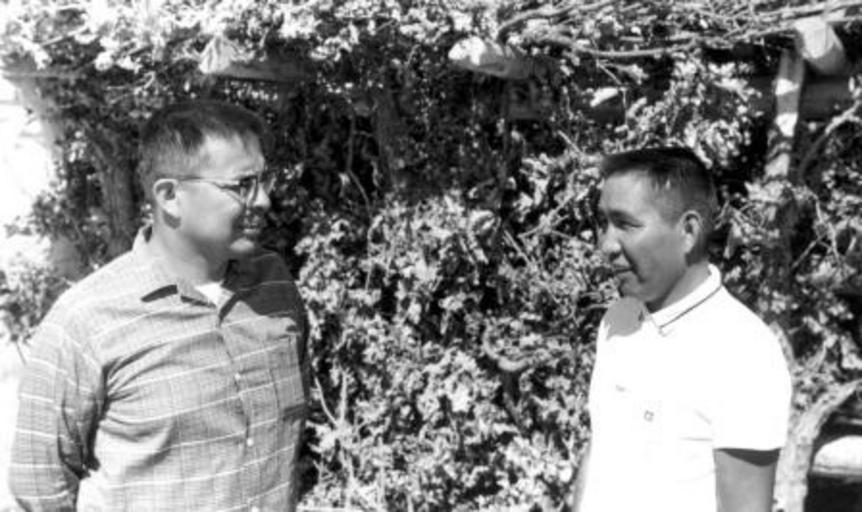 | Keywords: voluntary service voluntaryservice mennonite board of missions mennoniteboardofmissions black mountain mission blackmountainmission arizona tom dennison tomdennison naswood burbank naswoodburbank blackandwhite monochrome black and white Caption:  1963.  Tom Dennison (left) and Naswood Burbank discuss plans for camp meeting.   Citation: Mennonite Board of Missions. Photographs. Winslow, Arizona, Voluntary Service Units & Black Mountain Mission, 1950-1970. IV-10-7.2 Box 2 Folder 3, photo #1.  Mennonite Church USA Archives - Goshen. Goshen, Indiana. Caption:  1963.  Tom Dennison (left) and Naswood Burbank discuss plans for camp meeting.   Citation: Mennonite Board of Missions. Photographs. Winslow, Arizona, Voluntary Service Units & Black Mountain Mission, 1950-1970. IV-10-7.2 Box 2 Folder 3, photo #1.  Mennonite Church USA Archives - Goshen. Goshen, Indiana.  |