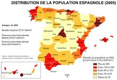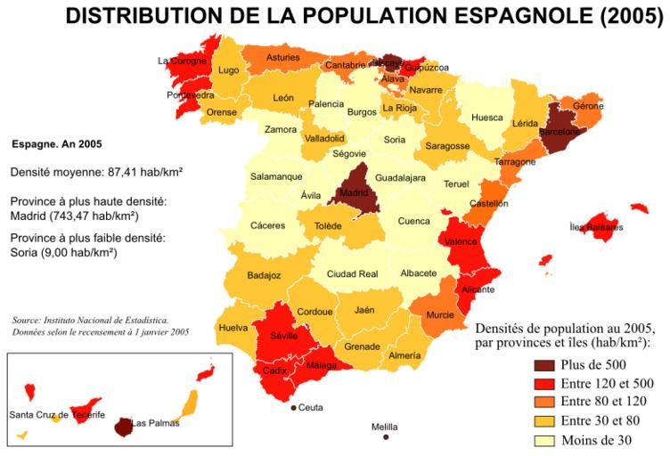 Keywords: Densités de population en Espagne (2005).png Carte de l'Espagne montrant les densités de populaton par provinces et îles selon le recensement du 2005 élaboré par lInstituto Nacional de Estadística Il existe aussi une version en espagnol et une version en anglais de cette carte 2006-10-27 own assumed Rodriguillo Population density maps of Spain 2005 maps |