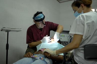 | Keywords: Dental Services during the humanitarian assistance mission DVIDS112685.jpg en Air Force Tech Sgt Karen Merrow right embarked aboard the amphibious assault ship USS Kearsarge comforts a Colombian child as Canadian army Capt Ian Thornton extracts a tooth during dental services provided during the humanitarian assistance mission Continuing Promise 2008 Kearsarge is supporting the Caribbean phase of CP an equal-partnership mission between the United States Canada the Netherlands Brazil Nicaragua Panama Colombia Dominican Republic Trinidad and Tobago and Guyana 2008-08-29 Seaman Ernest Scott https //www dvidshub net/image/112685 080829-N-+++++-120 2008-09-03 08 22 PALMIRA CO PD-USGov-Military-Navy USS Kearsarge LHD-3 Images from DoD uploaded by Fæ |