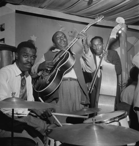 Keywords: Denzil Best, Al Casey, and John Levy.jpg Denzil Best Al Casey and John O Levy Pied Piper New York N Y gottlieb 01151 between 1946 1948 creator William P Gottlieb PD-Gottlieb Black and white photographs of the United States in the 1940s John Levy Al Casey jazz guitarist Denzil Best