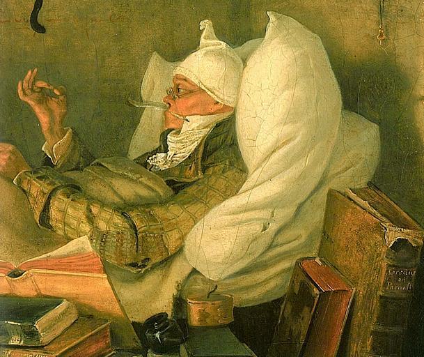 | Keywords: Der arme Poet (Ausschnitt 1).jpg Artwork de Der arme Poet detail der 3 Fassung des Gemäldes ehm Alte Nationalgalerie Berlin oil canvas unknown Genre works scanned from book 1837 Creator Carl Spitzweg PD-old-100 Other versions 200px Carl Spitzweg - Der arme Poet Pillows |