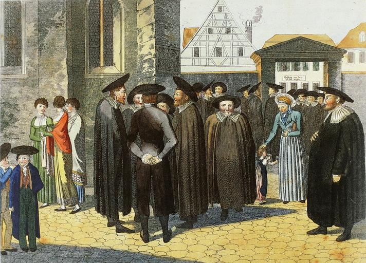 | Keywords: Der Samstug (Saturday).jpg Der Samstag Saturday Germany c 1800 Handcolored engraving Hebrew Union College Skirball Museum Los Angeles Based on a Frederich Campe painting it depicts Jews gathered outside a synagogue on the Sabbath The men are wearing flat round hats called baretta The eight-pointed star on the corner of the synagogue is a traustein From Jewish Art edited by Grace Cohen Grossman ISBN 0-88363-695-6 p 172 Copied with a Canon EOS Digital Rebel with EF 50mm f/1 8 mounted on a copy stand at the UConn art department ISO 100 f/8 1/25s To avoid blurring all rotation and perspective correction was done with Hugin as a frontend to the nona stitching engine using the Sinc1024 interpolator The image was then cropped and level-adjusted with Gimp and saved with a JPEG quality of 0 9 PD-Art Judaism in art Shabbat Synagogues in art Created with Hugin Artworks missing infobox template Days in art |