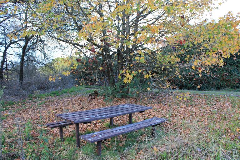 Keywords: Derelict picnic table autumn fall Lake George New South Wales
