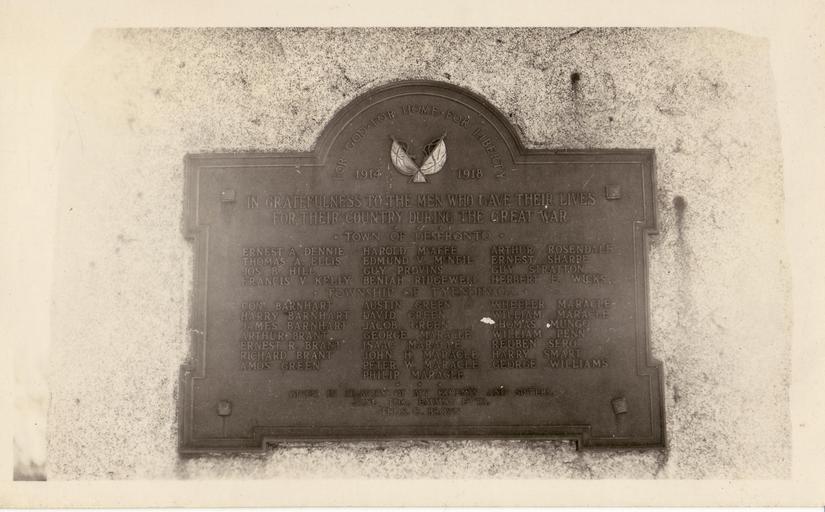 | Keywords: 1920s world war i worldwari memorials tyendinaga mohawk territory tyendinagamohawkterritory monochrome First World War memorial, unveiled on September 3, 1923 in Deseronto, Ontario. "For God, For Home, For Liberty, 1914 1918 In gratefulness to the men who gave their lives for their country during the Great War Town of Deseronto Ernest A. Dennie Thomas A. Ellis Jos [Joseph] B. Hill Francis V. Kelly Harold McAfee Edmund V. McNeil Guy Provins Beniah Ridgewell Arthur Rosendale Ernest Sharpe Guy Stratton Herbert E. Wicks Township of Tyendinaga Con Barnhart Harry Barnhart James Barnhart Arthur Brant Ernest R. Brant Richard Brant Amos Green Austin Green David Green Jacob Green George Maracle Isaac Maracle John H. Maracle Peter W. Maracle Philip Maracle Wheeler Maracle William Maracle Thomas Mungo William Penn Reuben Sero Harry Smart George Williams Given in memory of my parents and sisters, Jane, Ida, Emma, Etta. Thos [Thomas] C. Brown." First World War memorial, unveiled on September 3, 1923 in Deseronto, Ontario. "For God, For Home, For Liberty, 1914 1918 In gratefulness to the men who gave their lives for their country during the Great War Town of Deseronto Ernest A. Dennie Thomas A. Ellis Jos [Joseph] B. Hill Francis V. Kelly Harold McAfee Edmund V. McNeil Guy Provins Beniah Ridgewell Arthur Rosendale Ernest Sharpe Guy Stratton Herbert E. Wicks Township of Tyendinaga Con Barnhart Harry Barnhart James Barnhart Arthur Brant Ernest R. Brant Richard Brant Amos Green Austin Green David Green Jacob Green George Maracle Isaac Maracle John H. Maracle Peter W. Maracle Philip Maracle Wheeler Maracle William Maracle Thomas Mungo William Penn Reuben Sero Harry Smart George Williams Given in memory of my parents and sisters, Jane, Ida, Emma, Etta. Thos [Thomas] C. Brown." |