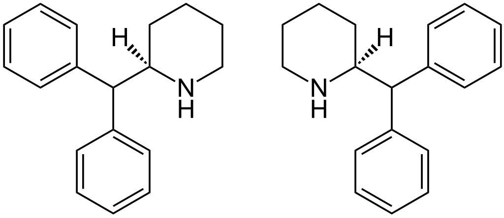 Keywords: (±)-Desoxypipradrol Enantiomers Structural Formulae V.1.svg en ± -Desoxypipradrol_Enantiomers_Structural_Formulae RS -Desoxypipradrol_Enantiomers_Structural_Formulae ± -Desoxypipradrol Desoxypipradrol de ± -Desoxypipradrol Desoxypipradrol own Jü 2010-08-25 Racemate Racemat Phenyl compounds Piperidines Racemic mixture