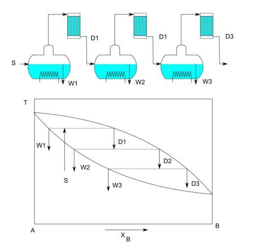 Keywords: Dest wielost 1.svg en Multi-stage distillation 1 pl Destylacja wielostopniowa 1 own Joanna Kośmider 2011-01-01 Cc-zero Distillation Binary phase diagrams