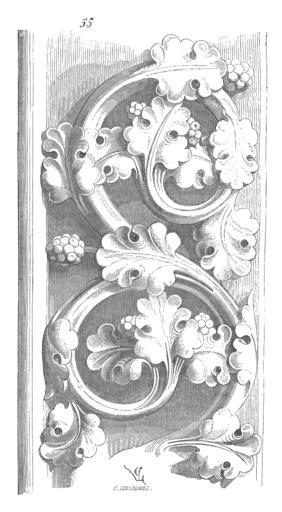 | Keywords: Detail.archivolte.porte.Vierge.Notre.Dame.Paris.png Ainsi ce rinceau d'archivolte provenant de la porte de la Vierge sur la façade occidentale de Notre-Dame de Paris fig 55 rappelle encore la composition du rinceau de Sens Mais ici l'exécution est plus large la disposition des masses plus claire les détails moins recherchés; de plus la tradition romane est absolument abandonnée la nature mieux observée et serrée de plus près Ce n'est pas là une copie d'une plante Ces feuilles ces tiges et leurs attaches n'existent pas dans la flore et cependant l'ornement a toute l'allure d'un végétal Savoir donner à un objet composé toute l'apparence d'un individu végétal ou animal réel c'est de l'art dans la véritable acception du mot Viollet-le-Duc Flora Viollet-le-Duc |