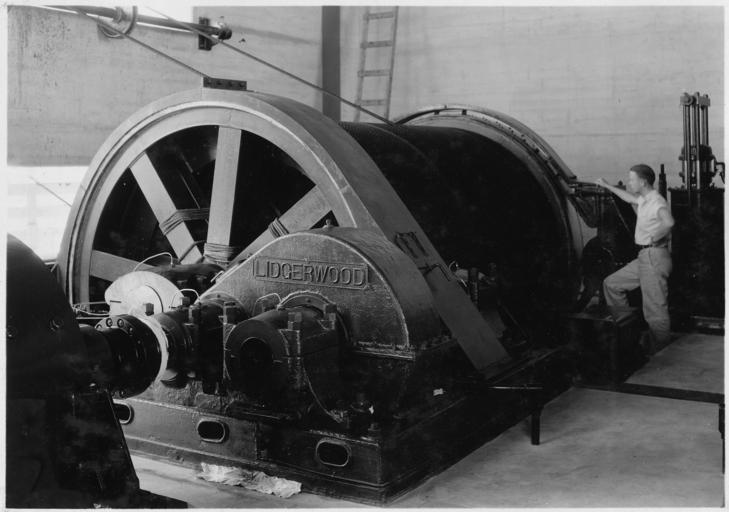 | Keywords: Detail of endless conveyor drum, 150-ton cableway hoist house - NARA - 293940.jpg Scope and content Photograph from Volume Two of a series of photo albums documenting the construction of Hoover Dam Boulder City Nevada General notes 293940 Local identifier Department of the Interior Bureau of Reclamation Engineering and Research Center 05/18/1981 - 03/04/1988 NARA's Rocky Mountain Region Denver NRGA Building 48 Denver Federal Center West 6th Avenue and Kipling Street Denver CO 80225-0307 1933-08-29 Record group Record Group 115 Records of the Bureau of Reclamation 1889 - 2008 Record group ARC 444 Photograph albums compiled 1903 - 1972 Series ARC 293611 File unit File unit ARC Variant control numbers NAIL Control Number NRG-115-CONSTPHO85006-BC21928 Other versions <gallery> File Detail of endless conveyor drum 150-ton cableway hoist house - NARA - 293940 tif tif </gallery> key Lidgerwood NARA-cooperation PD-USGov Cableway stations 1933 Six Companies Inc cableways at Hoover Dam construction site Hoist house interior 1933 in the United States |