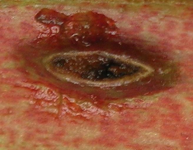 Keywords: Detail of Lixus concavus eggs laying site.JPG en Feeding and egg laying site on Rhubarb Rheum stalk as caused by Lixus concavus own Rosser1954 Roger Griffith 2010-07-21 Lixus concavus Rhubarb