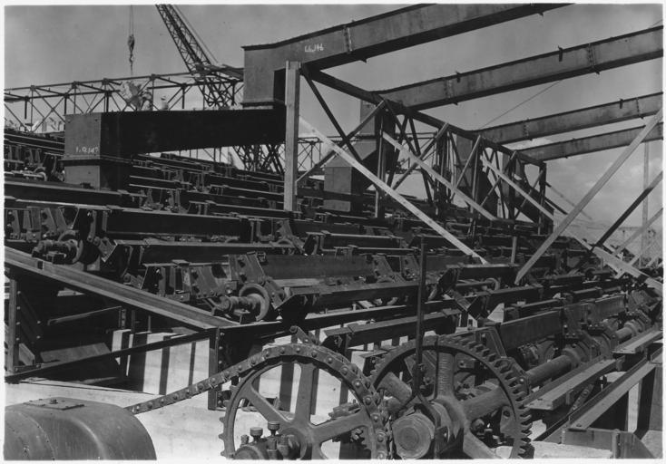 | Keywords: Detail of sand grading machinery, gravel washing and screening plant - NARA - 294105.jpg Scope and content Photograph from Volume Two of a series of photo albums documenting the construction of the Grand Coulee Dam and related work on the Columbia Basin Project General notes 294105 Local identifier Department of the Interior Bureau of Reclamation Engineering and Research Center 05/18/1981 - 03/04/1988 NARA's Rocky Mountain Region Denver NRGA Building 48 Denver Federal Center West 6th Avenue and Kipling Street Denver CO 80225-0307 1935-09 Record group Record Group 115 Records of the Bureau of Reclamation 1889 - 2008 Record group ARC 444 Photograph albums compiled 1903 - 1972 Series ARC 293611 File unit File unit ARC Variant control numbers NAIL Control Number NRG-115-CONSTPHO85006-COLBASIN2825 Other versions <gallery> File Detail of sand grading machinery gravel washing and screening plant - NARA - 294105 tif tif </gallery> NARA-cooperation PD-USGov Construction of the Grand Coulee Dam |