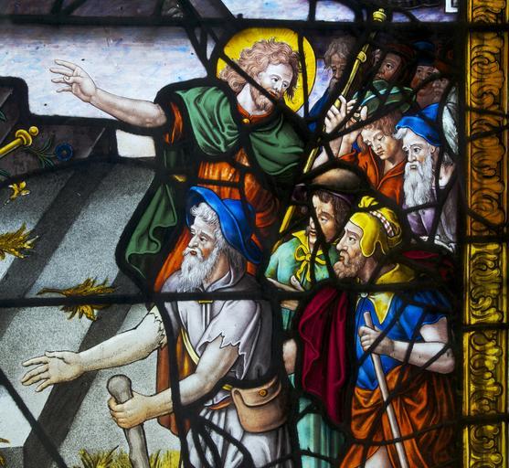 Keywords: Detail window st etienne du Mont.jpg en detail of a stained glass window of Church Saint-Etienne du Mont in Paris fr Détail d'un vitrail de Saint-Etienne du Mont à Paris Le Christ appelant à adorer l'Eucharistie Salle des catéchismes own Jebulon early 17th century 26 mars 2011 48 50 47 3 N 2 20 54 4 E Cc-zero QualityImage Stained glass window number 9 of Chapelle des Catéchismes 17th-century stained glass windows Eucharist on stained glass windows Quality images by Jebulon Quality images of stained glass in Paris