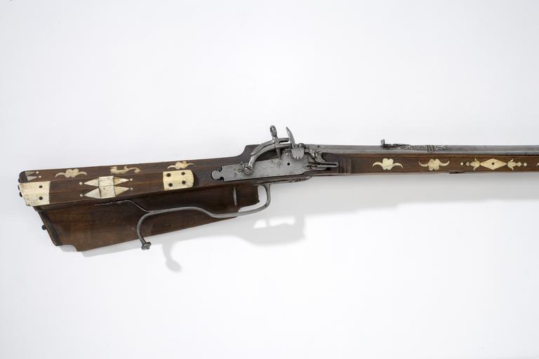 | Keywords: Detalj lås-stock snapplåsbössa - Livrustkammaren - 66296.jpg Sexräfflad pipa med åttsidig pipa och trumf Partiet däremellan med svinrygg Dekor på bakre delen av kammaren framför siktet samt hela trumfens ovansida i form av rankornament av påslaget silver På de två senare ställena två tvärgående profilerade band med dekor av koppar och mässing <br/>Riktmedel Vingformigt sikte av stål med profilerad klack avslutad framåt med bladornament Spolformigt stolpkorn av mässing <br/><br/>Snapplås av skandinavisk-baltisk typ Plant låsbleck med kulformigt utskott baktill Hane av baltisk typ med lös överkäke ringformigt käkskruvhuvud Batteri med omvändningseldstål med liten fjäder fastskruvad på fängpannelocket mellan eldstål och pipa Fängpanna med plan gavel rundad nederkant med filad dekor Eldstål av flintlåsform med profilerad åsning på ryggen Batterifjäder utan studel <br/>Fästning Två låsskruvar <br/>Rak avtryckare <br/><br/>Helstock av trä med kolv av tysk-rysk typ med bred vinge Bakplåt av trä med sex kolvkulor av stål Åsat kolvlådelock med rektangulära benplattor på ändarna samt två rombiska plattor på mitten Mellan kolvlådelock och lås inslaget hertig Karls rustkammarstämpel spegelmonogram C krönt med hertigkrona Glest yttäckande dekor i form av inlagda ben- och pärlemorplattor på anslagethjärtformiga och blomformiga inläggningar I mitten en rund genombruten benplatta En plan profilerad mellanrörka och en plan slät överrörka samt näsband samtliga av ben Varbygel av stål baktill utdragen och nedåtböjd med kulformig avslutning Båda varbygelfästena i form av bladornament En oval rembygel av stål fäst genomstocken med en skruv <br/><br/>Tillbehör <br/>Laddstock l 1040 mm av trä med skoning av stål l 137 mm original caption detalj lås-stock snapplåsbössa - LRK 7714 end other date century 17 steel e1247 - eldvapen - pipa lås riktmedel och beslag material stål - brass e4 - eldvapen - riktmedel material mässing - silver e5 - eldvapen - pipdekor material silver - wood e3 - eldvapen - stock material trä - bone e78 - eldvapen - stockbeslag och stockdekor material ben - mother-of-pearl e8 - eldvapen - stockdekor material pärlemor - brass e8 - eldvapen - stockdekor material mässing size mm 1436 size mm 1047 pipa size mm 139 g 4780 LRK Karl XIII av Sverige -Norge Basutställning Nordiska vapenformer place of origin Moskwa original filename lm_dig2521 43992 inventory number LRK 7714 66296 CC-BY-SA Göran Schmidt <gallery caption Different images of same object > File Detalj pipdekor snapplåsbössa - Livrustkammaren - 6371 jpg File Detalj stämpel stock snapplåsbössa - Livrustkammaren - 74858 jpg File Detalj stock snapplåsbössa v sida - Livrustkammaren - 57735 jpg File Detalj pipdekor snapplåsbössa - Livrustkammaren - 83417 jpg </gallery> Göran Schmidt Musket images from Livrustkammaren color images Flintlock muskets images from Livrustkammaren Media contributed by LSH dim-with multiple size templates Color images from Livrustkammaren Media contributed by LSH 2013-10 |