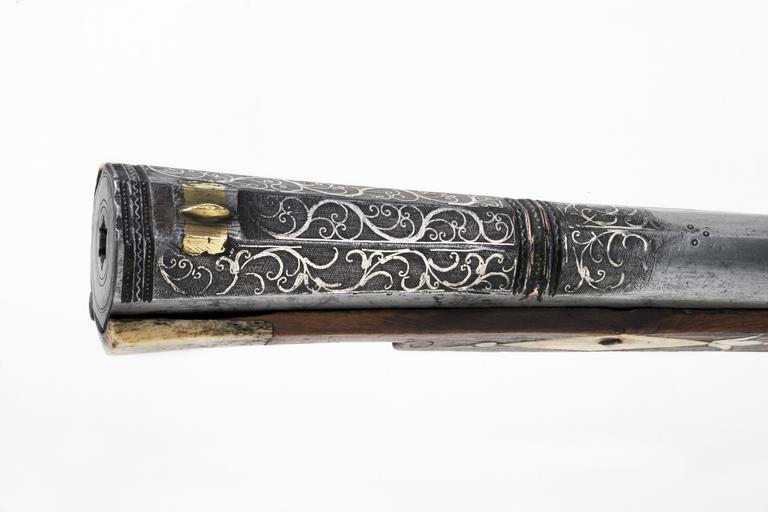 | Keywords: Detalj pipdekor snapplåsbössa - Livrustkammaren - 6371.jpg  Sexräfflad pipa med åttsidig pipa och trumf Partiet däremellan med svinrygg Dekor på bakre delen av kammaren framför siktet samt hela trumfens ovansida i form av rankornament av påslaget silver På de två senare ställena två tvärgående profilerade band med dekor av koppar och mässing <br/>Riktmedel Vingformigt sikte av stål med profilerad klack avslutad framåt med bladornament Spolformigt stolpkorn av mässing <br/><br/>Snapplås av skandinavisk-baltisk typ Plant låsbleck med kulformigt utskott baktill Hane av baltisk typ med lös överkäke ringformigt käkskruvhuvud Batteri med omvändningseldstål med liten fjäder fastskruvad på fängpannelocket mellan eldstål och pipa Fängpanna med plan gavel rundad nederkant med filad dekor Eldstål av flintlåsform med profilerad åsning på ryggen Batterifjäder utan studel <br/>Fästning Två låsskruvar <br/>Rak avtryckare <br/><br/>Helstock av trä med kolv av tysk-rysk typ med bred vinge Bakplåt av trä med sex kolvkulor av stål Åsat kolvlådelock med rektangulära benplattor på ändarna samt två rombiska plattor på mitten Mellan kolvlådelock och lås inslaget hertig Karls rustkammarstämpel spegelmonogram C krönt med hertigkrona Glest yttäckande dekor i form av inlagda ben- och pärlemorplattor på anslagethjärtformiga och blomformiga inläggningar I mitten en rund genombruten benplatta En plan profilerad mellanrörka och en plan slät överrörka samt näsband samtliga av ben Varbygel av stål baktill utdragen och nedåtböjd med kulformig avslutning Båda varbygelfästena i form av bladornament En oval rembygel av stål fäst genomstocken med en skruv <br/><br/>Tillbehör <br/>Laddstock l 1040 mm av trä med skoning av stål l 137 mm original caption detalj pipdekor snapplåsbössa - LRK 7714 end other date century 17 steel e1247 - eldvapen - pipa lås riktmedel och beslag material stål - brass e4 - eldvapen - riktmedel material mässing - silver e5 - eldvapen - pipdekor material silver - wood e3 - eldvapen - stock material trä - bone e78 - eldvapen - stockbeslag och stockdekor material ben - mother-of-pearl e8 - eldvapen - stockdekor material pärlemor - brass e8 - eldvapen - stockdekor material mässing size mm 1436 size mm 1047 pipa size mm 139 g 4780 LRK Karl XIII av Sverige -Norge Basutställning Nordiska vapenformer place of origin Moskwa original filename lm_dig2524 43992 inventory number LRK 7714 6371 CC-BY-SA Göran Schmidt <gallery caption Different images of same object > File Detalj stämpel stock snapplåsbössa - Livrustkammaren - 74858 jpg File Detalj stock snapplåsbössa v sida - Livrustkammaren - 57735 jpg File Detalj pipdekor snapplåsbössa - Livrustkammaren - 83417 jpg File Detalj lås-stock snapplåsbössa - Livrustkammaren - 66296 jpg </gallery> Göran Schmidt Musket images from Livrustkammaren color images Flintlock muskets images from Livrustkammaren Media contributed by LSH dim-with multiple size templates Color images from Livrustkammaren Media contributed by LSH 2013-10 |