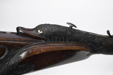 Keywords: Detalj stockdekor slaglåsstudsare - Livrustkammaren - 65343.jpg Åttsidig brunerad räfflad pipa med trumf 8 räfflor högerräffling Pipan förlängd med ett obrunerat parti tvärt avskuret svansskruvblad graverad ranka På h sida vinge med tändhattsnippel På pipans översida graverad text under Bataillen vid Wiais och Helsinge d 28/9 1808 har Befälhafvaren för Svenska Finska Gardiet Conr Åkerhjelm tagit detta gevär från en rysk Jägare vid Regem n o 1 På kammarens v sida graverad text C Å 28/9 1808 på h sida C M Af R 1825 <br/>Riktmedel Klaffsikte av blånerat stål stolpkorn av mässing båda inlaxade <br/>Fästning Pipan fäst med blånerad krysskruv samt två engelska pipstift och däremellan rembygelns skruv <br/><br/>Slaglås av stål med välvt låsbleck och graverade bladrankor på hane och låsbleck bakåtliggande slagfjäder Harmynt slaghuvud nätskuret tumgrepp På låsets insida är slagfjäder stång och stångarm vända åt samma håll <br/>Fästning En låsskruv med åttsidig bricka <br/>Svagt böjd avtryckare Avtryckarbleck framtill avslutat med en urneformig platta med blad <br/><br/>Brun helstock av trä kolv av fransk typ med kindstöd och kolvlåda kolvhalsen nätskuren Rik snidad dekor på kolvens undersida ett fiskhuvud och på framstocken en lejonmaskaron båda med inlagda pärlemorögon samt snidade bladornament Bakom kindstödet en liggande hjort På kolvens undersida en oval vitmetall-plåt silver graverad med nr 1 Kolvlådelock med snidat tumgrepp med rund blomma locket öppnas genom att trycka på blommans mitt Näsband av horn övriga beslag av stål Bakplåt med en spetsig bladgraverad flik på kolvryggen Två runda rörkor Varbygel med graverade rankor fäst på avtryckarblecket En u-formig rembygel vid bakre rörka rund knapp bakom varbygeln <br/><br/>Tillbehör <br/>Laddstock av mässing l 663 mm original caption detalj stockdekor slaglåsstudsare - LRK 3669<br/> Nyckelord Detalj Studsare Dekorerade Figur Jakt Vapen Föremålsbild Gustav V - other date ca 1800 ca 1850 wood e3 - eldvapen - stock material trä - steel e1247 - eldvapen - pipa lås riktmedel och beslag material stål - mother-of-pearl e8 - eldvapen - stockdekor material pärlemor - brass e4 - eldvapen - riktmedel material mässing g 4190 size mm 670 pipa size mm 1080 LRK Oscar II av Sverige -Norge Carl Magnus af Robson bergsråd Karl XV av Sverige-Norge Gustaf V av Sverige Conrad Reinhold Åkerhielm överste place of origin original filename lm_dig2136 40201 inventory number LRK 3669 65343 CC-BY-SA Göran Schmidt <gallery caption Different images of same object > File Detalj slaglåsstudsare - Livrustkammaren - 22541 jpg File Detalj stockdekor slaglåsstudsare - Livrustkammaren - 39663 jpg File Detalj slaglåsstudsare v sida - Livrustkammaren - 48224 jpg File Detalj stockdekor slaglåsstudsare - Livrustkammaren - 48221 jpg File Detalj slaglåsstudsare - Livrustkammaren - 39666 jpg File Detalj slaglåsstudsare - Livrustkammaren - 31103 jpg File Detalj stockdekor slaglåsstudsare - Livrustkammaren - 56782 jpg </gallery> Göran Schmidt Percussion muskets images from Livrustkammaren Gustav V of Sweden Musket images from Livrustkammaren color images Flintlock muskets images from Livrustkammaren Media contributed by LSH unmatched material Media contributed by LSH dim-with multiple size templates Media contributed by LSH unmatched keyword Color images from Livrustkammaren Wood carving Media contributed by LSH 2013-10