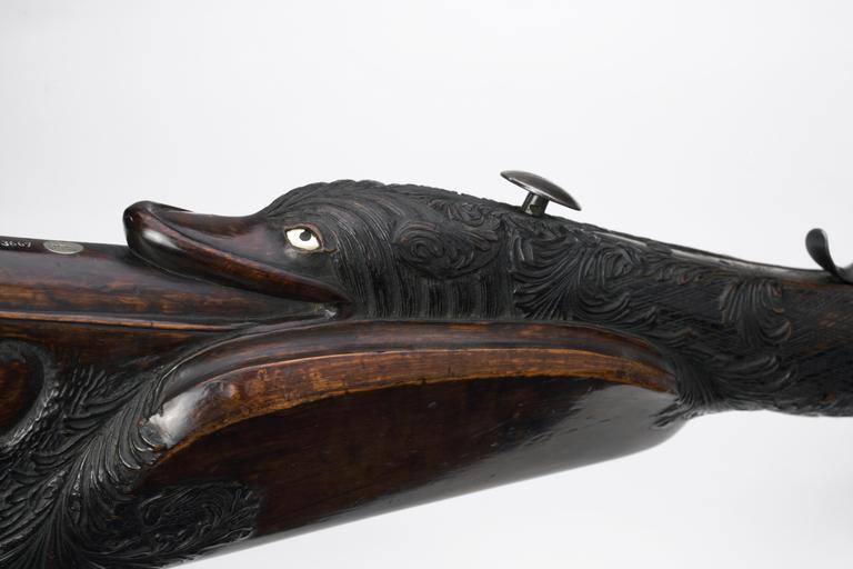 MAKE A MEME View Large Image Detalj stockdekor slaglåsstudsare - Livrustkammaren - 65343.jpg Åttsidig brunerad räfflad pipa med trumf 8 räfflor högerräffling Pipan förlängd med ett obrunerat parti tvärt avskuret svansskruvblad graverad ranka På h sida vinge ...
