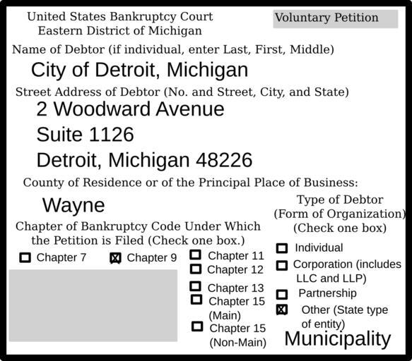 MAKE A MEME View Large Image Detroit bankruptcy.svg en picture of bankruptcy petition stylized it covers the basic elements from page 1 of Detroit's filing enough to create a summary for the article Also since this is simply text from a government filing it is ...