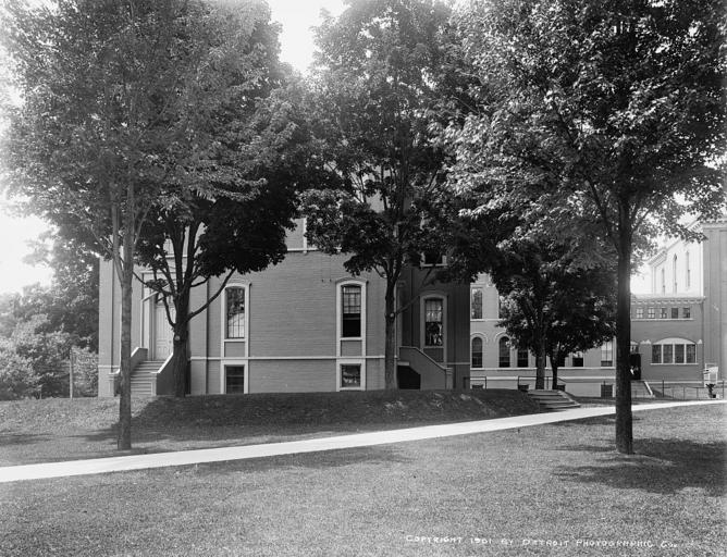 Keywords: Detroit Publishing Company - MSNC Old Main Building north and rear.jpg Library north wing built in 1888 and rear addition built in 1882 of the Old Main Building at Michigan State Normal College now Eastern Michigan University as it appeared in 1901 Detroit Publishing Company via Library of Congress http //www loc gov/pictures/collection/det/item/det1994006819/PP/ 1901 Detroit Publishing Company PD-Detroit PD-US Old Main Building Eastern Michigan University Black and white photographs |