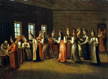 | Keywords: Devichnik v kupecheskom dome.jpeg ru Девичник в купеческом доме XVIII век Из коллекции ка тин Госуда ственного узея «Э митаж» XVIII c http //nevsepic com ua/art-i-risovanaya-grafika/4491-kollekciya-kartin-gosudarstvennogo-muzeya-ermitazh-v-sankt-peterburge-17-chast-94-rabot html author PD-Art Uploaded with UploadWizard Bachelorette party in Russia Portraits of Russian merchant women Russian paintings in the Hermitage | ||||