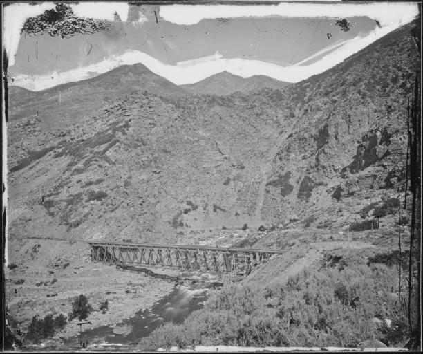 Keywords: Devil's Gate Bridge. Northern Utah - NARA - 519460.jpg Scope and content General notes 519460 Local identifier 77-KN-31 War Department Office of the Chief of Engineers U S Geological Exploration of the Fortieth Parallel 1867 - 1881 NARA-Author O'Sullivan Timothy H 1840-1882 Photographer 1733522 <br /> Still Picture Records Section Special Media Archives Services Division NWCS-S National Archives at College Park 8601 Adelphi Road College Park MD 20740-6001 ~ 1869 Record group Record Group 77 Records of the Office of the Chief of Engineers 1789 - 1999 Record group ARC 406 Geological Exploration of the Fortieth Parallel-The King Survey compiled 1867 - 1872 Series ARC 519442 File unit File unit ARC Variant control numbers NAIL Control Number NWDNS-77-KN-31 Other versions <gallery> File Devil's_Gate_Bridge _Northern_Utah_-_NARA_-_519460 tif tif File Devil's_Gate_Bridge _Northern_Utah_-_NARA_-_519460 jpg jpg </gallery> NARA-cooperation PD-USGov Weber Canyon Railway bridges in Utah Wooden trestle bridges in the United States Wooden railway bridges Black and white photographs of Utah NARA images of Utah |