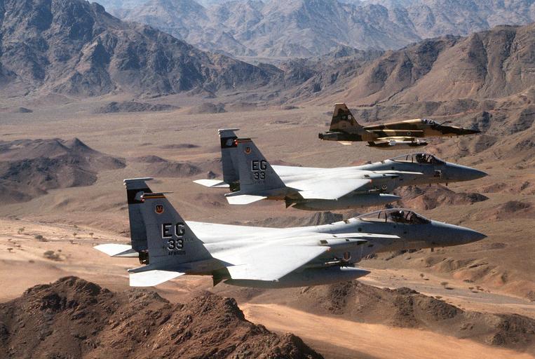 Keywords: DF-ST-92-07774 (5375302077).jpg An air-to-air view of two U S Air Force F-15C Eagle fighter aircraft from the 33rd Tactical Fighter Wing Eglin Air Force Base Fla and a Royal Saudi Air Force F-5E Tiger II fighter aircraft during a mission in support of Operation Desert Storm The aircraft are armed with AIM-9 Sidewinder air-to-air missiles https //www flickr com/photos/usairforce/5375302077/ DF-ST-92-07774 2011-01-21 11 22 https //www flickr com/people/39513508 N06 US Air Force from USA PD-USGov Official U S Air Force https //flickr com/photos/39513508 N06/5375302077 2016-12-15 01 07 44 United States Government Work Files from the U S Air Force Flickr stream Files uploaded by Reguyla United States Air Force |