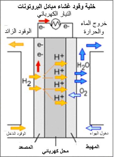 | Keywords: Diagram of PEM Fuel CEll (Arabic).png en Diagram of PEMFC in Arabic language ar مخطط خلية وقود غشاء تبادل البروتون Own Ciphers 2008 Oct 29 PD-USGov Image of a proton exchange membrane fuel cell From http //www eere energy gov/hydrogenandfuelcells/fuelcells/fc_types html Fuel cell diagrams Diagrams in Arabic |