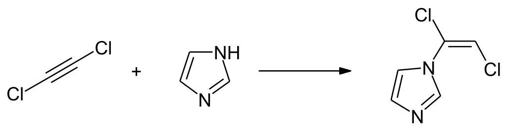 Keywords: Dichloroethyne synthesis01.svg en Reaction of dichloracetylene with imidazole de Reaktion von Dichlorethin mit Imidaziol own Steffen 962 2014-12-04 PD-chem Acetylene Alkyne derivatives Cc-zero