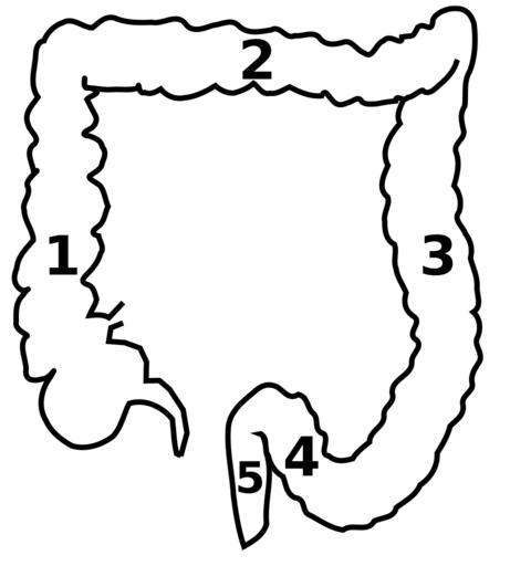 Keywords: Dickdarm-Schema.svg Der Dickdarm hat verschiedene Teile in Klammern die Zahlen im Schema aufsteigender Dickdarm 1 querverlaufender Dickdarm 2 absteigender Dickdarm 3 Sigma 4 Mastdarm und Anus 5 Image Dickdarm-Schema jpg 2007-01-30 de Benutzer Lange123 svg version by User Indolences Lange123 IntestinoCrasso png SuddivisioneColon png Diagrams labelled with numbers only Segments of the human colon |