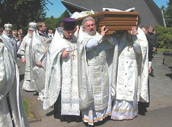 Keywords: Die Beerdigung Priesters Alexander Penkow.jpg de Die Beerdigung Priesters Alexander Penkow en Burial of priest Alexander Penkov ru Пог ебение священника Александ а Пенькова под Бонном Own 2009-06-24 Velopilger Maria-Obhut-Kirche Düsseldorf Funerals of clergy Priests of the Russian Orthodox Church Orthodox service for the departed Longin Talypin White vestments |