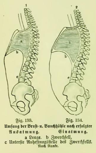 | Keywords: Die Frau als Hausärztin (1911) 133 134 Umfang der Brust- und Bauchhöhle nach erfolgter Aus- und Einatmung.png de Fig 133 und 134 Umfang der Brust- und Bauchhöhle nach erfolgter Aus- und Einatmung a Lunge <br/> b Zwerchfell <br/> c Unterste Anheftungsstelle des Zwerchfells <small>Nach Ranke </small> 1911 Die Frau als Hausärztin Mit 485 Original-Illustrationen 38 Tafeln und Kunstbeilagen in feinstem Farbendruck dem Porträt der Verfasserin und einem Modell-Album Mann und Weib 800 000 Jubiläumsausgabe Süddeutsches Verlagsinstitut Stuttgart 1911 diefraualshaus00fiscuoft Creator Anna Fischer-Dückelmann Custom license marker 2014 01 04 PD-US PD-old Illustrations from Die Frau als Hausärztin Uploaded with UploadWizard Respiration Anatomical plates and drawings of human bones Anatomical plates and drawings of the human torso Thoracic diaphragm |