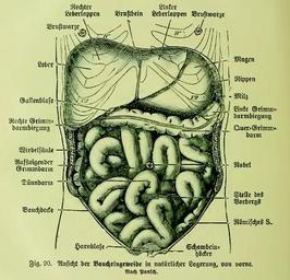 | Keywords: Die Frau als Hausärztin (1911) 020 Ansicht der Baucheingeweide.png de Fig 20 Ansicht der Baucheingeweide in natürlicher Lagerung von vorne <small>Nach Pansch </small> 1911 Die Frau als Hausärztin Mit 485 Original-Illustrationen 38 Tafeln und Kunstbeilagen in feinstem Farbendruck dem Porträt der Verfasserin und einem Modell-Album Mann und Weib 800 000 Jubiläumsausgabe Süddeutsches Verlagsinstitut Stuttgart 1911 diefraualshaus00fiscuoft Creator Anna Fischer-Dückelmann Custom license marker 2014 01 03 PD-US PD-old Illustrations from Die Frau als Hausärztin Uploaded with UploadWizard Anatomical plates and drawings of the digestive system |