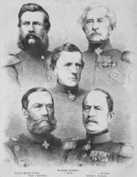 Keywords: Die Gartenlaube (1866) b 476.jpg Preußische Heerführer 1866 obere Reihe von links Kronprinz Friedrich Wilhelm - von Moltke - von Steinmetz untere Reihe von links Vogel von Falckenstein - Herwarth von Bittenfeld Die_Gartenlaube_ 1866 _476 jpg Die_Gartenlaube_ 1866 _477 jpg PD-old-70-1923 Gartenlaube 1866 Friedrich III of Germany Helmuth von Moltke the Elder Karl Friedrich von Steinmetz Eduard Vogel von Falckenstein Karl Eberhard Herwarth von Bittenfeld Austro-Prussian War |