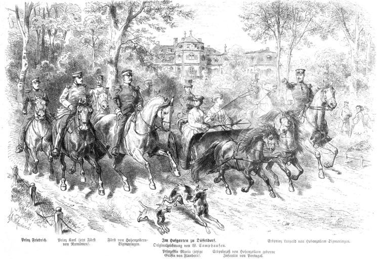 | Keywords: Die Gartenlaube (1867) b 485.jpg Die_Gartenlaube_ 1867 _485 jpg Die_Gartenlaube_ 1867 _486 jpg Im Hofgarten zu Düsseldorf Personen Prinz Friedrich Prinz Karl jetzt Fürst von Rumänien Fürst von Hohenzollern-Sigmaringen Erbprinz Leopold von Hohenzollern-Sigmaringen Prinzessin Maria jetzige Gräfin von Flandern Erbprinzeß von Hohenzollern geborne Infantin von Portugal Gartenlaube 1867 W Camphausen circa 1866 Out of copyright image made before 1867 Schloss Jägerhof Horses in art Wilhelm Camphausen |