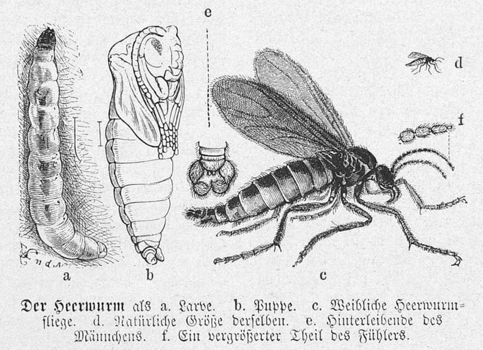 | Keywords: Die Gartenlaube (1871) b 667.jpg 667 668 Sciaridae ImageNote 1 30 690 1073 123 1129 820 2 Der Heerwurm als a Larve b Puppe c Weibliche Heerwurmfliege d Natürliche Größe derselben e Hinterleibende des Männchens f Ein vergrößerter Theil des Fühlers ImageNoteEnd 1 |