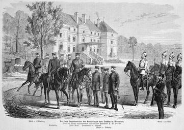 | Keywords: Die Gartenlaube (1871) b 033.jpg 033 034 Die Gartenlaube Franco-Prussian War Albert of Saxony ImageNote 1 1103 2255 1250 95 3460 2458 2 Vor dem Hauptquartier des Kronprinzen von Sachsen in Margency Nach der Natur aufgenommen von unserem Feldmaler F W Heine ImageNoteEnd 1 ImageNote 2 506 2255 363 78 3460 2458 2 Fürst v Schönburg ImageNoteEnd 2 ImageNote 3 891 2324 199 78 3460 2458 2 Kronprinz ImageNoteEnd 3 ImageNote 4 1285 2354 221 48 3460 2458 2 Fürst Reuß ImageNoteEnd 4 ImageNote 5 1522 2350 398 48 3460 2458 2 Hauptmann v Wurmb ImageNoteEnd 5 ImageNote 6 1786 2397 324 35 3460 2458 2 Major v Schurig ImageNoteEnd 6 ImageNote 7 2937 2263 311 74 3460 2458 2 Garde Kürassiere ImageNoteEnd 7 Friedrich Wilhelm Heine Margency |
