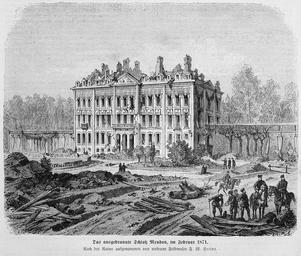 | Keywords: Die Gartenlaube (1871) b 197.jpg 197 198 Die Gartenlaube Franco-Prussian War Friedrich Wilhelm Heine ImageNote 1 658 1960 1153 130 2479 2108 2 Das ausgebrannte Schloß Meudon im Februar 1871 Nach der Natur aufgenommen von unserem Feldmaler F W Heine ImageNoteEnd 1 |