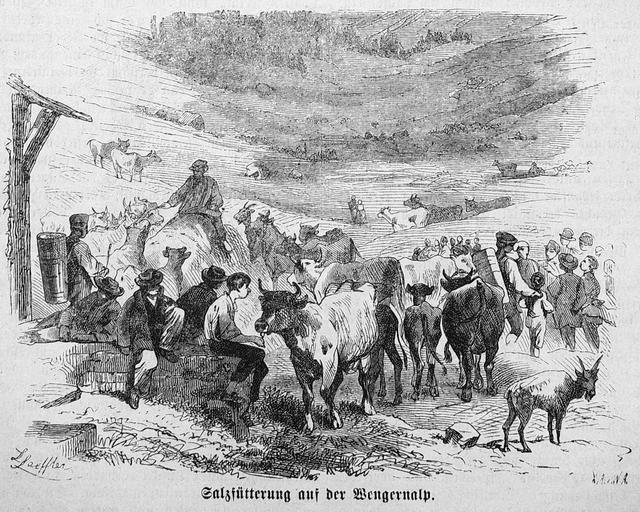 Keywords: Die Gartenlaube (1872) b 575 2.jpg 575 576 People with cattle Feeding animals in art Wengernalp
