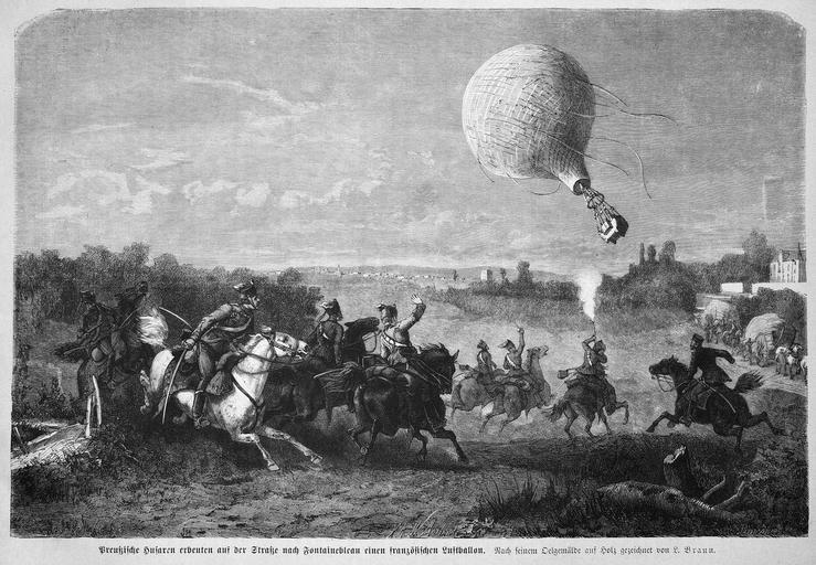 | Keywords: Die Gartenlaube (1872) b 387.jpg 387 388 Louis Braun 1836 “1916 de Preußische Husaren erbeuten auf der Straße nach Fontainebleau einen französischen Luftballon Nach seinem Oelgemälde auf Holz gezeichnet von L Braun <br />Bild von Seite 387 der Zeitschrift Die Gartenlaube 1872 Image from page 387 of journal Die Gartenlaube 1872 Balloon aircraft in art 1872 Balloon aircraft of France 1871 ca Die Gartenlaube Franco-Prussian War Military ballooning 1871 ca Louis Braun Anti-balloons warfare Hussars of Prussia |