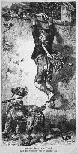 Keywords: Die Gartenlaube (1874) b 707.jpg siehe Berichtigung Die Gartenlaube 1874/47 Rosenthal 707 708 Theft Boys with dogs in art Escape in art