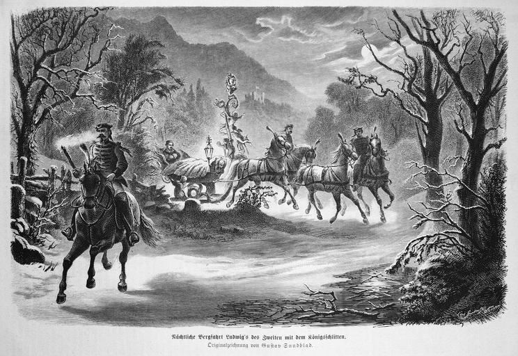 Keywords: Die Gartenlaube (1874) b 843.jpg 843 844 Ludwig II of Bavaria Horse sleighs in art Gustav Sundblad Black and white drawings